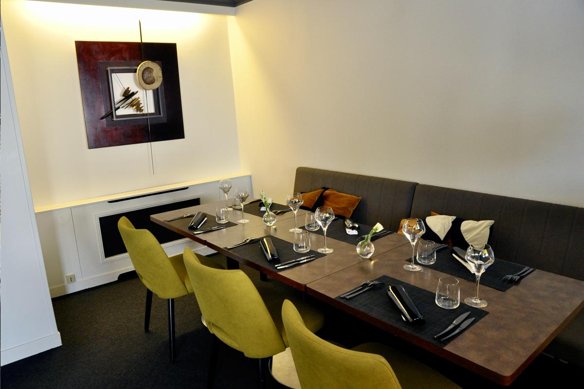 Formule à 95 €Starter, main course, dessert, house aperitif, wine, water and coffee with petits fours. |